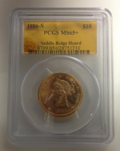 A sampling of the coins with special gold-colored foil “Saddle Ridge Hoard” PCGS certification insert labels will be displayed at the Kagin’s booth (#707) during the upcoming American Numismatic Association National Money Show in Atlanta, February 27-March 1, 2014.
