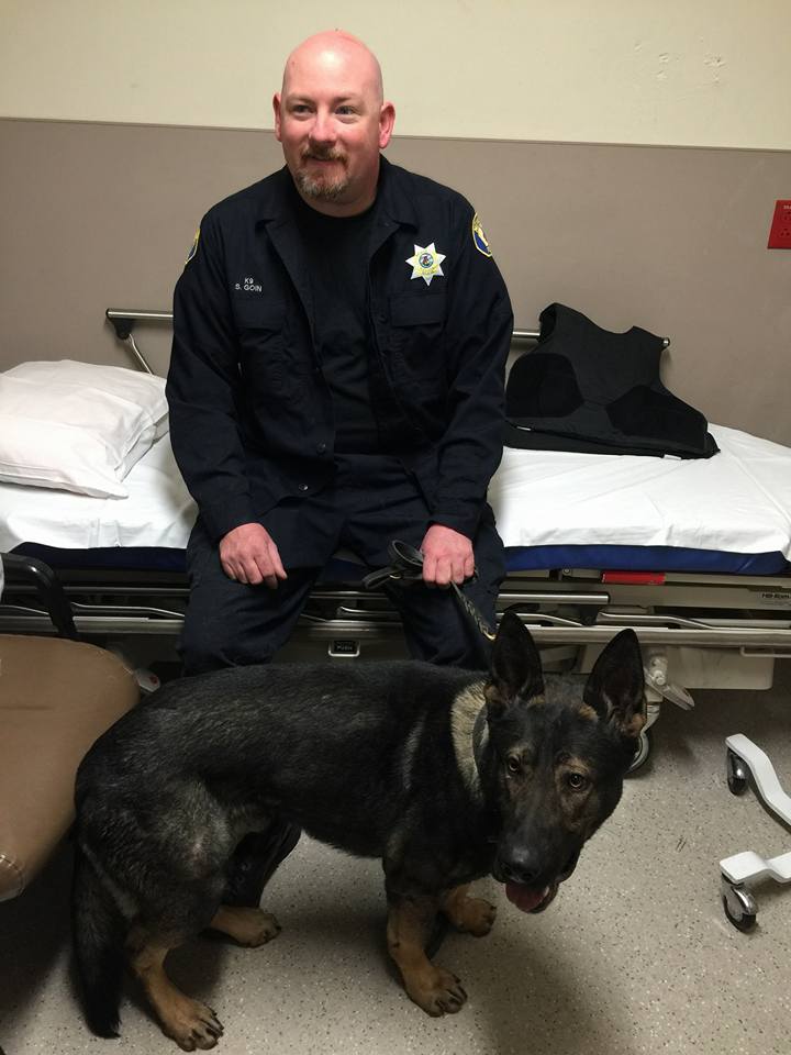 “Both Officers are going to be just fine. Scott Goin sustained minor injuries and was treated and released from Sierra Nevada Memorial Hospital. Rüdiger was seen by his veterinarian, Dr. Susan Murphy, Four Paws Animal Clinic in Nevada City. He has bruising and may be sore for a few days but is expected to make a full recovery.”