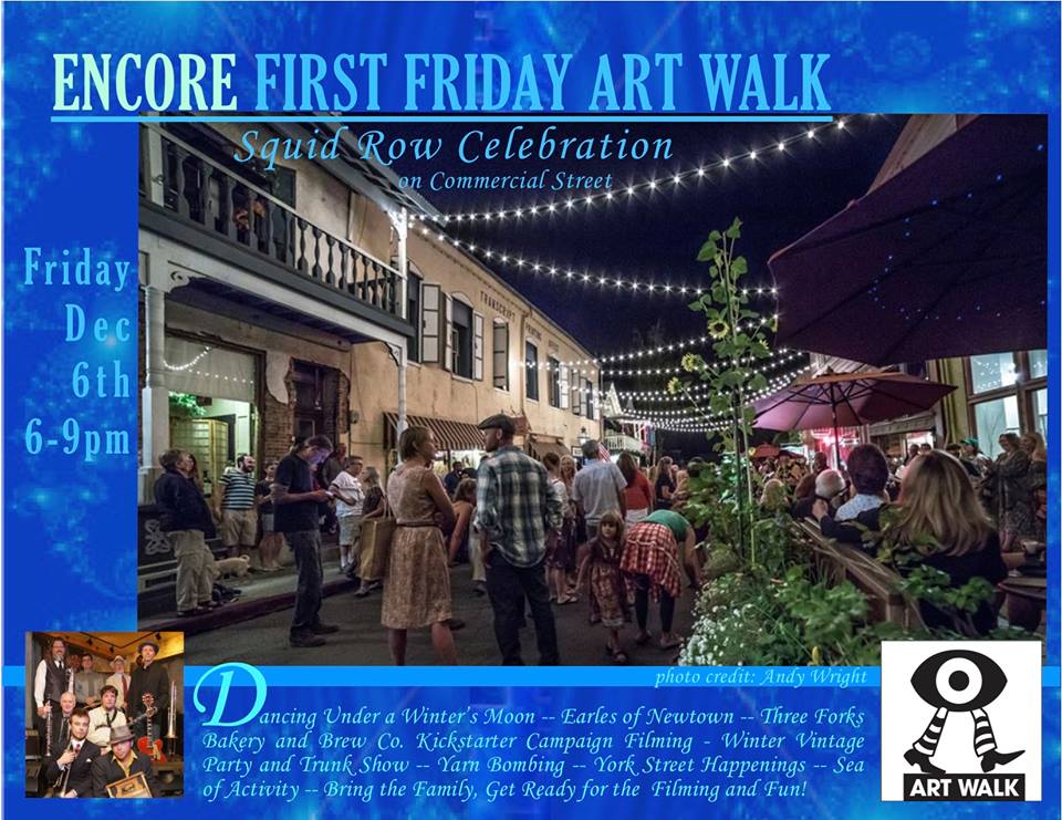 “This is a scaled down version of the First Friday Art Walk, however, if you are a downtown merchant interested in keeping your business opened or would like to participate at the Commercial Street location, please contact Reinette Senum at reinettesenum@gmail.com.”